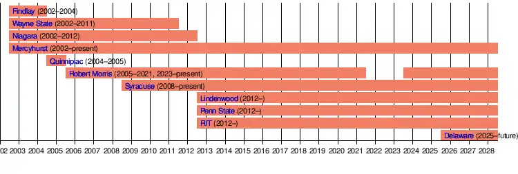 University of DelawareRochester Institute of TechnologyPennsylvania State UniversityLindenwood UniversitySyracuse UniversityRobert Morris UniversityQuinnipiac UniversityMercyhurst CollegeNiagara UniversityWayne State UniversityUniversity of Findlay