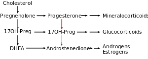 - ↑ Miller, Walter L. (2012). "The Syndrome of 17,20 Lyase Deficiency". The Journal of Clinical Endocrinology & Metabolism. 97 (1): 59–67. doi:10.1210/jc.2011-2161. PMC 3251937. PMID 22072737.