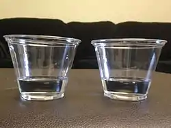Two glasses with an equal amount of liquid