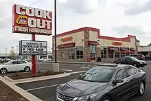 Cook Out is a privately owned American fast-food restaurant chain operating in North Carolina, South Carolina, Alabama, Georgia, Kentucky, Tennessee, Virginia, West Virginia, Maryland, and Mississippi. Founded in Greensboro, North Carolina in 1989,[2] the chain has since expanded and now has restaurants in over 100 cities. The chain itself has grown in size with many locations now spread throughout the Southeastern US.[3]