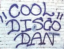 Cool "Disco" Dan (December 31, 1969 – July 26, 2017) was the pseudonym of American graffiti artist Dan Hogg.[1][2] His standard mark, a particularly styled rendering of his name, was ubiquitous in the Washington metropolitan area, notably along the route of the Washington Metro Red Line.[1][3]