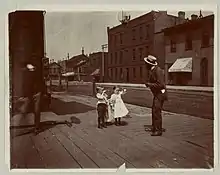 The Library of Congress has a photograph of two Caucasian children pointing at an African American described as illustrating a line from the song.[6]