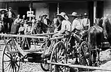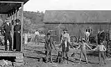 Isolated villages needed a general supply store, and Cootes supplied that need for two Virginia towns, Cootes Store and Dovesville (renamed Bergton).[4] Located a mile from Brocks Gap, Cootes Store was a rendezvous point for working men meeting on a Saturday afternoon, given its strategical location.[5] Historic photographs reveal that from earlier times it was always an agricultural community with cowboys. In 1870, merchants began using the Shenandoah River from Brock's Gap to Cootes Store for transporting people and goods.[6] By 1900, Cootes Store had a one-room public school.[7]