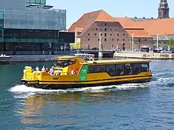 The Copenhagen Harbour Buses (Danish: Københavns Havnebusser) is a system of water buses along the harbourfront of Copenhagen, Denmark, operated by Movia which also operates the city’s regular buses. There are four vessels: Holmen, Bryggen, Nordhavn and Nyhavn. The Harbour Buses are integrated into the Copenhagen public transport system with the same payment system as buses, Metro or DSB trains.[1]
