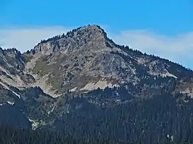 Copper Mountain is a 6,302-foot (1,921-metre) mountain summit located in Mount Rainier National Park in Pierce County of Washington state.[1] Part of the Cascade Range, it is situated near the base of the Success Cleaver, overlooking Indian Henry's Hunting Ground. Its nearest neighbor is Iron Mountain 0.3 miles (0.48 km) to the south, and its nearest higher peak is Pyramid Peak, 1.0 mile (1.6 km) to the northeast.[3][2] The summit provides views of Mount Rainier, Mount Adams, Mount St. Helens, and peaks of the Tatoosh Range. Precipitation runoff from Copper Mountain drains into Tahoma Creek and Fishers Horn Pipe Creek, which are both tributaries of the Nisqually River. There were great hopes in the late 1800s that mines on Mount Rainier could be a source of precious metals such as copper, silver, and gold.[4] This landform's toponym was officially adopted in 1932 by the United States Board on Geographic Names.[1]
