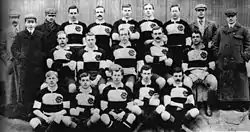 The Barbarian Football Club, known as the Barbarians, is a British-based invitational rugby union club. The Barbarians play in black and white hoops, though players wear socks from their own club strip.[4] Membership is by invitation. As of 2011, players from 31 countries had played for them.[5] Traditionally at least one uncapped player is selected for each match.[4][6]