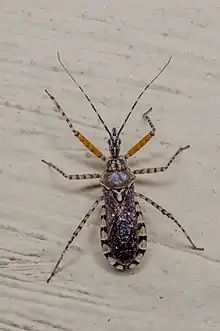 Cosmoclopius nigroannulatus is a species of assassin bug family (Reduviidae), in the subfamily Harpactorinae. It is a predator of pests in tobacco fields.[1][2] Its main prey is the tobacco grayish bug, Spartocera dentiventris Berg (Hem.: Coreidae).[3]