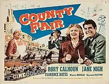 County Fair is a 1950 American drama film directed by William Beaudine and starring Rory Calhoun, Jane Nigh and Florence Bates.[1] It was a remake of the 1932 film The County Fair, which had also been remade in 1937.[2] A group of locals thwart the plans of a group of criminals to fix a race by doping a horse.