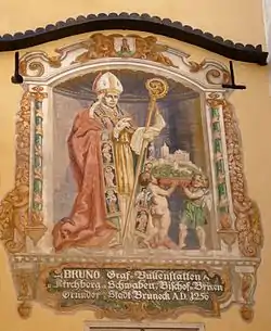 • Bruno of Kirchberg, Bishop of Brixen: Bruno's father was most likely Conrad I, Count of Kirchberg. The tradition from Brixen is likely to apply, since both Bruno's brothers Conrad II and Eberhard III of Kirchberg named their firstborn Conrad. According to the necrologists from Stams and Brixen, his mother's name was Bertha. She came from the family of the House of Gorizia. It could be the daughter of Engelbert III, Count of Gorizia (unnamed in 1206 (Strasbourg/Carinthia) in the Gurk historical sources) and Matilda of Andechs. Mathilde's sister was also called Bertha (Abbess of Gerbstett). This would make Bruno's mother a sister of Meinhard III of Gorizia. Presumably through this connection with the people of Gorizia, Bruno came to the cathedral school in Brixen as a child; on the occasion of a certification in Lyon (5 July 1274) he thanks for the education there. Bruno was originally for the bishopric in Trent, which he had to renounce after papal intervention. From 1250 until his death on 24 August 1288 he was bishop of Brixen. The founding of the city of Bruneck and the construction or expansion of Bruneck Castle can be traced back to him. The city's name is variously derived from his first name.[8] He is also a co-founder of the Cistercian Abbey of Stams in the Inn Valley.[9]