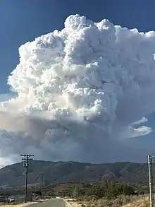 The fire caused evacuations in residential areas, including Mountain Center, Idyllwild, Pine Cove, and Cedar Glen, as well as evacuations and closures in Mount San Jacinto State Park and the San Jacinto Ranger District of the San Bernardino National Forest. It also caused road closures along Highway 74 and Highway 243, impacting access to Hemet. Parts of Highway 74 and Highway 243 were later closed multiple times due to the threat of mudslides caused by the fire.[11] Areas in the Mountain Center area were also ordered to evacuate multiple times due to this threat.[12] Additionally, it caused numerous trail closures, including the Pacific Crest Trail. Parts of the National Forest were ordered closed until July 31, 2019.[13] Over 7,000 people were evacuated due to the fire.[1]