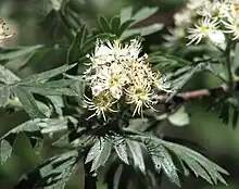 Crataegus orientalis, known as oriental hawthorn,[2] is a species of hawthorn native to the Mediterranean region, Turkey, Caucasia, Crimea, and western Iran, with fruits that are orange or various shades of red.[1][3]