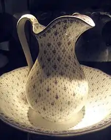 Ewer and basin with transfer-printed decor of diaper-pattern, Creil-Montereau (Musée Gallé-Juille at Creil)