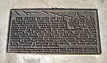 The flood was commemorated in Woody Guthrie's song "Los Angeles New Year's Flood".[8] To honor the victims of that New Year's calamity and to mark its 75th anniversary, a small monument was dedicated January 1, 2004, at Rosemont and Fairway avenues in Montrose, near where the American Legion Hall had stood.