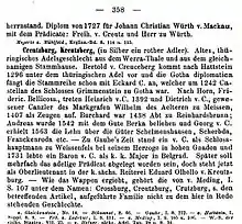 Extract from the New German Lexicon of Nobility referencing the Creuzburg name. Heinrich Kneschke, Leipzig 1860.