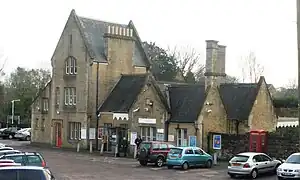 The station was opened on 19 July 1860 when the LSWR opened its Yeovil and Exeter Railway. The main building was designed by Sir William Tite and has been designated as a Grade II listed building.[1] The office (converted to a cafe in late-2013) by the main road was used to operate the weighbridge. When it opened, a goods shed was built, now the site of a builder's yard. It can still be seen from the railway line today. A wooden signal box was erected in 1875 on the eastbound platform, just east of the main offices.[2]