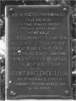 During one of the frequent matches at Brittain's country house, it was decided to form a club. On November 5, 1831, a cricket game was played in Recoleta, Buenos Aires, near the Nuestra Señora del Pilar church. During that game, a flag with the legend "Buenos Aires Cricket Club" was displayed.[2] Some historians affirm that was the current Buenos Aires Cricket & Rugby Club, which would later set its foundation on 1864 although it is believed the club was established at least 30 years before.[3]