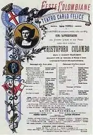 Cristoforo Colombo (Christopher Columbus, Italian pronunciation: [kriˈstɔːforo koˈlombo]) is an opera in four acts and an epilogue by Alberto Franchetti to an Italian libretto by Luigi Illica. It was written in 1892 to commemorate the 400th anniversary of Christopher Columbus' arrival in America.