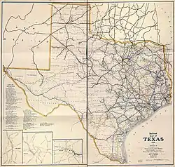 The railroad was chartered on April 6, 1910. The initial capital was $150,000 and the first board of directors consisted of Julian M. Bassett, Roger M. Bassett, William D. Petzel, and Joseph C. Johnson, of Crosbyton, Texas; Avery Coonley of Riverside, Illinois; and John S. Coonley and Prentiss L. Coonley, of Chicago, Illinois with the principal office located in Crosbyton. The intent was to construct two lines, totaling 120 miles. The first line was to run Crosbyton to Lubbock, Texas, and the second from Crosbyton to Plainview, Texas.[1] The Crosbyton to Lubbock line was completed in early 1911 and consisted of 38.4 miles of main line track and 5.2 miles of yard track and sidings. Construction never began on the second line from Crosbyton to Plainview. The Crosbyton-South Plains' first run occurred on April 10, 1911, departing from Crosbyton with service to Lubbock.[2] The nearly 39 mile long line ran through the towns of Ralls, Texas, Lorenzo, Texas, and Idalou, Texas, before reaching Lubbock. At its peak, the Crosbyton-South Plains operated one steam locomotive, 2 passenger cars and 2 freight cars.[3]