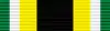 The ribbon is black with yellow side stripes and green and white checkered edges for combatants. For non-combatants the ribbon is also black and yellow, separated from a green edge by white stripes.