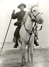 The statue was inaugurated by the Committee of Friends of the Marquis de Baroncelli on July 7, 1926, in Saintes-Maries-de-la-Mer on a platform next to the post office (opposite the current "Grand Large" building). During this celebration, many personalities, including the Marquis de Baroncelli and his friends, were present: the poet Joseph d'Arbaud, Rul d'Elly, Maguy Hugo (granddaughter of Victor Hugo), Madame de la Garanderie, Fanfonne Guillierme, the family of the owners of Maison Aubanel, Pauline Ménard-Dorian, and her husband, the painter Hermann-Paul.[6]