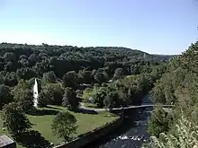 Croton Gorge Park is a park in Cortlandt, New York owned and operated by Westchester County. It consists of 97 acres (39 ha) at the base of New Croton Dam, which is one of the largest hand-hewn structures in the world(after the Great Pyramids and the Great Wall of China).[1] The park is a popular venue for fishing, picnicking, sledding and cross country skiing.[2] The Old Croton Trail begins in the park, which also includes a baseball field and an impressive fountain occasionally operated with high pressure water from the reservoir. The fountain was reopened in 2000 after having been out of service since the mid twentieth century.