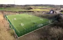 In 2012 a state of the art £1 million pound sports facility was opened in the village.[19] Spearheaded by local residents and part financed by North Lanarkshire Council,[20] the facility is home to a full size 3G football pitch with enclosure and stadium quality floodlighting, a 2 floor community pavilion with changing rooms and meeting area, and additional goalposts and line markings to allow conversion to 3 smaller football pitches when needed.