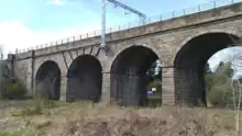 Croy has a Roman Catholic primary school (Holy Cross Primary)[10] and a large Catholic church (Holy Cross Church) that services a substantial congregation from all over the local area. The church has been established for over 100 years and has some impressive architectural features; the church bells are rung prior to each service and can be heard throughout the village.[11][12] Another impressive architectural feature is the Croy Railway Viaduct Archived 26 January 2016 at the Wayback Machine (known locally as the four arches). Built in the mid-1800s, the viaduct can be accessed via a heritage path running alongside Croy station. The path was redeveloped with the Croy station improvements and is now well signposted and more easily accessible. In 2013 it was announced that Croy Quarry, near the World Heritage Site of the Antonine Wall, was to close. Aggregate Industries lost their license to extract minerals at the end of 2017.[13]