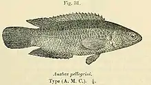 Ctenopoma pellegrini is a fish in the family Anabantidae[2] found in the Congo River basin of Africa. It grows to 11.2 cm in total length for a male/unsexed specimen.[1] This species was formally described by the British-Belgian ichthyologist George Albert Boulenger in 1902 with the type locality given as Yembe River at Banzyville in the Democratic Republic of Congo.[3] Boulenger honoured the French ichthyologist Jacques Pellegrin (1873-1944).[4]