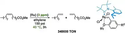 - ↑ Marx, Vanessa M.; Sullivan, Alexandra H.; Melaimi, Mohand; Virgil, Scott C.; Keitz, Benjamin K.; Weinberger, David S.; Bertrand, Guy; Grubbs, Robert H. (2015). "Cyclic Alkyl Amino Carbene (CAAC) Ruthenium Complexes as Remarkably Active Catalysts for Ethenolysis". Angewandte Chemie International Edition. 54 (6): 1919–1923. doi:10.1002/anie.201410797. ISSN 1521-3773. PMC 4713124. PMID 25522160.