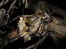Cyphoderris strepitans, the sagebrush cricket or sagebrush grig, is a one of only a few surviving species in the family Prophalangopsidae. Three of these species are in the genus Cyphoderris and all three are endemic to North America.[1] C. strepitans name is from the Latin word 'strepitans' which means 'making a great noise', refers to their calling song during the mating season.[2]