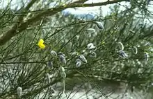 This shrub is similar to its relative, Cytisus scoparius, but it can be distinguished by the paler shade of yellow of its flowers and by the hairy coat on its pods.