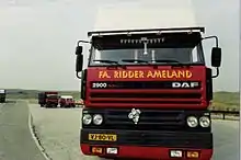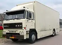 The DAF F241 series is the name of a cab used on a series of heavy-duty, mostly long distance trucks produced by the Dutch manufacturer DAF from 1973 until 1994. They are better known as the DAF 2800, 3300 and 3600. The cab was a wider development of the F218, DAF's first tilt cab placed on among others 2500. The names reflect the cab width in centimetres, at 218 and 241 cm (86 and 95 in) respectively. The cab was also used by Hungary's RÁBA for various applications.[1]