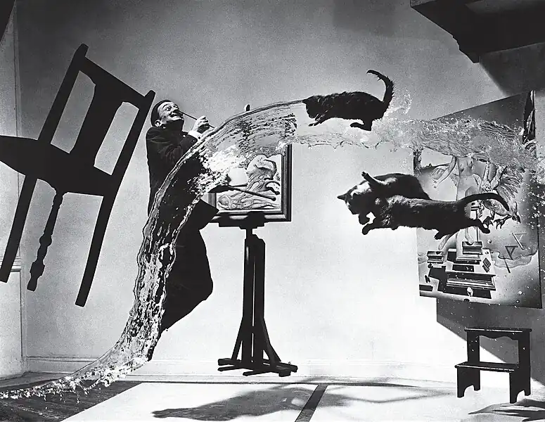 Dalí Atomicus is a surreal photograph of the artist Salvador Dalí jumping, taken by the photographer Philippe Halsman in 1948. The photograph also features three cats flying through the air.