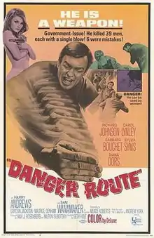 Danger Route is a 1967 British spy film directed by Seth Holt for Amicus Productions and starring Richard Johnson as Jonas Wilde, Carol Lynley and Barbara Bouchet.[1] It was based on Andrew York's 1966 novel The Eliminator[2] that was the working title of the film.[3]