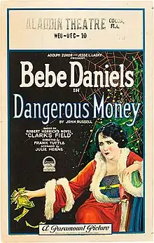 Dangerous Money is a 1924 American silent drama film produced by Famous Players–Lasky and distributed by Paramount Pictures. It was directed by Frank Tuttle and starred popular Bebe Daniels.[1][2]