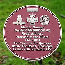 Daniel Cambridge VC (27 March 1820 – 4 June 1882) born in Carrickfergus, County Antrim, Ireland, was an Irish recipient of the Victoria Cross, the highest and most prestigious award for gallantry in the face of the enemy that can be awarded to British and Commonwealth forces.