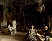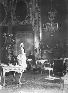 The Curtises left Boston in 1877 and got to Venice in 1880 where they lived most of their lives except for the many travels they took abroad, renting the palace when not at home. Beginning in 1881, they first rented a part of Palazzo Barbaro when in Venice but later, in 1885, they bought the second floor and the upper floors for $13,500.[9] Ariana said the palace was worth much more because its value shouldn't be set by the number of rooms but by its original 18th century decorations. After it was sold by the last of the Barbaros the palace was in great decay and most of its original decoration, above all the paintings, were gone. The Curtises begun a thorough restoration and kept the palace with love and dedication bringing it back to social and cultural life and making it the meeting place for some cosmopolitan Americans of the time.[10]