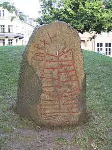 - ↑ Holtgård, Anders (1998). "Runeninschriften und Runendenkmäler als Quellen der Religionsgeschichte". In Düwel, Klaus; Nowak, Sean (eds.). Runeninschriften als Quellen Interdisziplinärer Forschung: Abhandlungen des Vierten Internationalen Symposiums über Runen und Runeninschriften in Göttingen vom 4–9 August 1995. Berlin: Walter de Gruyter. p. 727. ISBN 3110154552. Archived from the original on 10 November 2015.