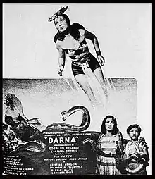 Darna is the first film featuring the Pilipino Komiks character Darna. The film was released on May 31, 1951, by Royal Films. It was directed by Fernando Poe Sr.[1] and written by Mars Ravelo, the creator of Darna. Long thought to be entirely lost, Howie Severino and his crew from i-Witness discovered in 2005 an incomplete copy of the film in Thailand lasting 40 minutes, with audio removed, and only featuring scenes of the villain Valentina.[2][3]