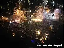 The Ganga Aarti starts soon after sunset and lasts for about 45 minutes. In the summer, the Aarti begins at about 7pm due to late sunsets and in winter it starts at around 6pm. Hundreds of people gather at the ghat every evening to watch the event.[3]