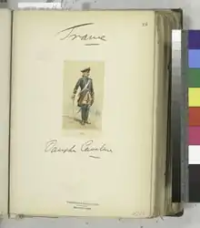 {{cite book}}: CS1 maint: multiple names: authors list (link) - Lienhart, Dr. Leo; Humbert, René (1899). Les Uniformes de l'Armée Français: Recuil d'ordonnances de 1690 à 1894. Vol. II: Cavalerie. Leipzig, Kingdom of Saxony, German Empire: M. Ruhl Library.