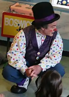 David Magidson (born March 6, 1963) is an American professional clown. As his character Boswick the Clown, he has performed for Ringling Bros. and Barnum & Bailey Circus and Make A Circus.[1] He has appeared as a clown in the movies Milk and Dr. Dolittle, as well in commercials for the Pacific Bell Yellow pages, Nissan, and BMW.[2] Since 2010, Magidson has written a blog on Blogger "designed to help family entertainers with all aspects of their performing."[3] As David Magidson, he performed as a member of the comedy-troupe "The Kloons" and in the San Francisco Fringe Festival.[4][5] As the character Boswick the Clown, Magidson appears at over 300 events each year, including schools and libraries, specializing in large juggling, magic, and comedy clown shows for children 4 years old to 8 years old.