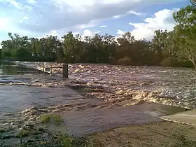 The Dawson River was one of a number of Queensland rivers affected by the 2010–11 Queensland floods. As the river inundated the town of Theodore it was completely evacuated, a first in Queensland's history.[5]