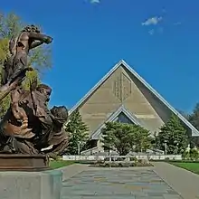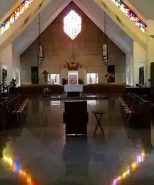 The Abbey Church was completed in the years during Second Vatican Council. It reflects the Liturgical Movement and the reforms of the council, as interpreted with the norms of Catholic tradition in mind. The Abbey Church is built in the basilica style, with a well appointed nave and a wide choir.