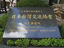 Other countries which have broken off diplomatic relations with Taiwan also established de facto missions. In 1972, Japan established the "Interchange Association, Japan" (renamed the "Japan-Taiwan Exchange Association" in 2017),[8] headed by personnel "on leave" from the Ministry of Foreign Affairs.[9] This became known as the "Japanese formula", and would be adopted by other countries like the Philippines in 1975, which established the "Asian Exchange Center", replacing its former Embassy.[10] This was renamed the "Manila Economic and Cultural Office" in 1989.[11]