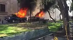 In the following days of the arrest video being released, hundreds of young people gathered in downtown Guadalajara, painting graffiti, breaking windows, and trying to force their way into the government palace. The police responded with tear gas, and two patrol cars were burned.[10] Police officer Rodolfo Essaú was set on fire; his condition was later reported as stable.[11] At least 28 people were detained for protesting.[12]