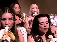 Armond White wrote in The Resistance: Ten Years of Pop Culture that Shook the World (1995): "In the great 'Deeper and Deeper', Madonna combines historicism with her pop art consciousness [...] she goes back to the era of pervasive decadence, typified through 70s disco and Andy Warhol's advertising zenith."[84] According to Guilbert, the video recreates "the atmosphere of the underground films of Warhol and Morrissey, particularly Flesh (1968) and Trash (1970)"; furthermore, he described Madonna's appearance as a mixture of Isadora Duncan, Dita Parlo, and Ingrid Thulin in La caduta degli dei (1969).[16] Guilbert also pointed out references to Italian director Luchino Visconti, and actor John Travolta in the 1977 film Saturday Night Fever. The scene in which Madonna and her girlfriends watch Stefano perform while eating bananas was, according to Guilbert, a nod to the Warhol-penned cover art for The Velvet Underground & Nico (1967); he concluded that, with the inclusion of Stefano and La Rue, Madonna was comforting her own status as a gay icon.[16]