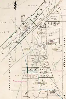 Thomas Mitchell explored the area around the Bogan River in 1835. The sheep station "The Overflow" made famous with the poem Clancy of the Overflow by Banjo Paterson,[7][8] is located 1 km south of the Parish.[9]