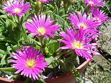 Delosperma sutherlandii is a dwarf perennial plant, native to South Africa. It forms a dense lawn with abundant, long-lasting flowering. It will reach sizes of 60 cm in diameter and approximately 10–15 cm tall, with possibly the largest flowers of its type.[3]