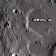 By convention these features are identified on lunar maps by placing the letter on the side of the crater midpoint that is closest to Dembowski.
